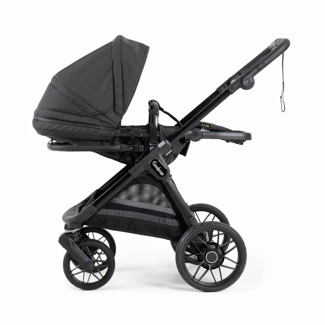 Das Gestell ist kompatibel mit allen Emmaljunga-Einheiten – Babywanne+, ERGO+ und FLAT+ – und lässt sich für Transport und Aufbewahrung kompakt zusammenklappen.
