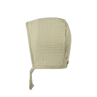 Süßes Babyhäubchen aus feiner leicht gekringelterMullware