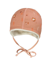 Sie ist außen aus weichem Jersey und hat ein wunderbar weiches Baumwollfleecefutter. Unter den Ohren deines Kindes lässt sich die Mütze mit Bändern zusammen binden.