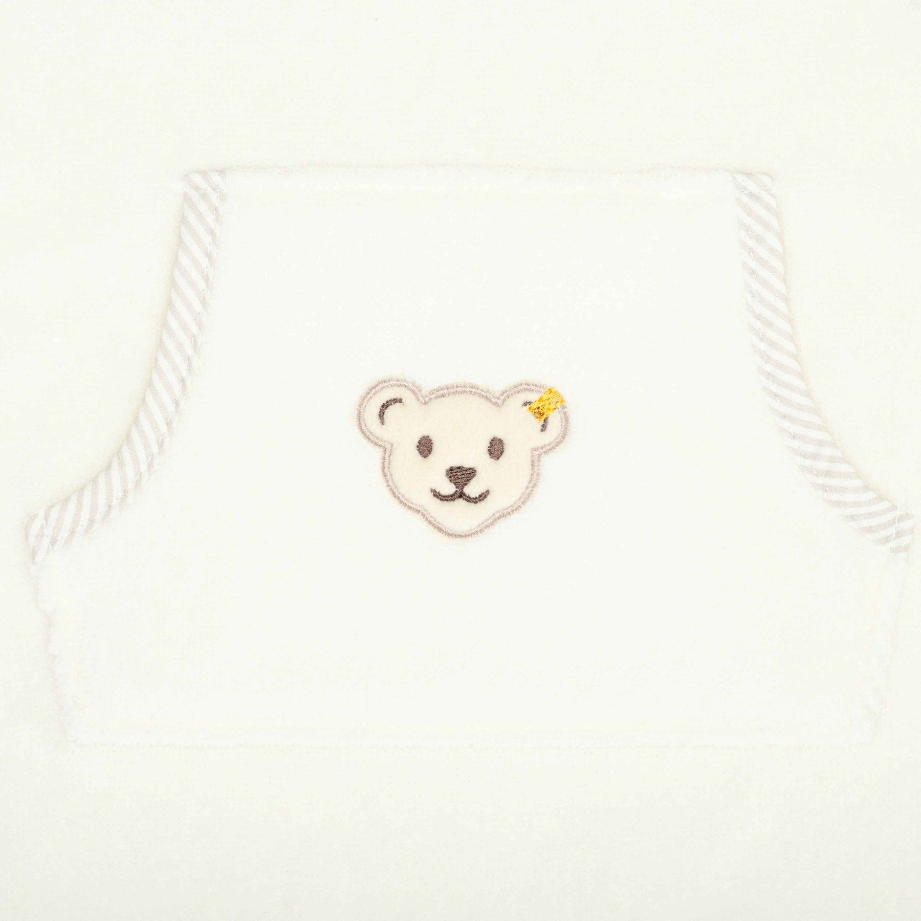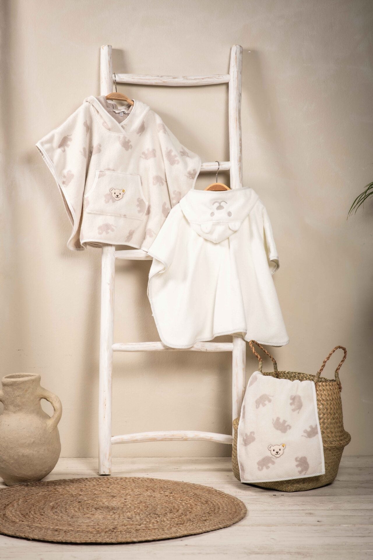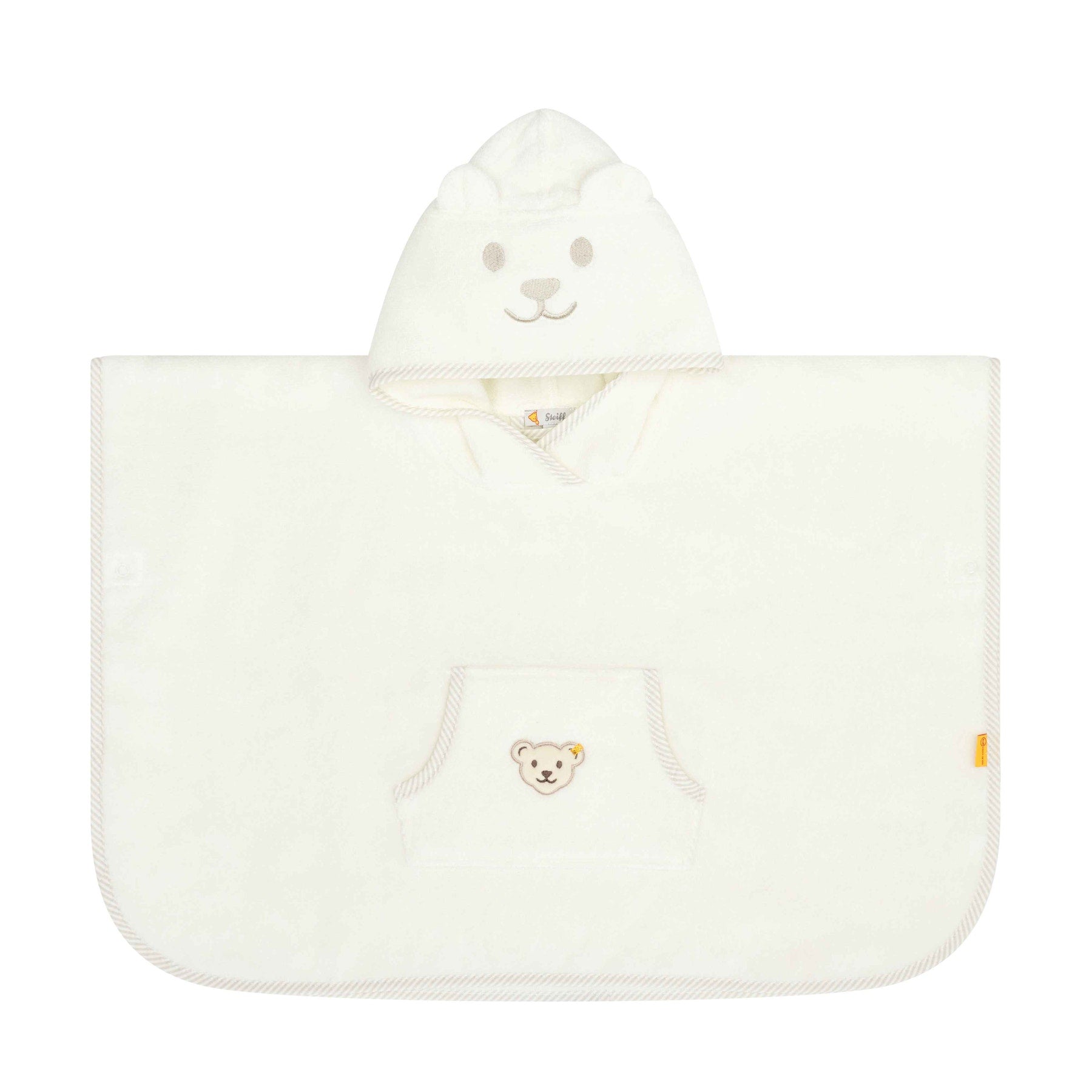 Flauschig-weicher Frottee trocknet und verwöhnt zarte Haut besonders angenehm. Druckknöpfe an den Seiten sorgen angenehm für perfekten Sitz. Ob nach einer Katzenwäsche, Zeit in der Badewanne oder unterwegs im Schwimmbad, die große Kapuze schützt das Köpfchen mit gemütlicher Wärme. Klassisches Offwhite passt in jedes Badezimmer und macht als Geschenk viel Freude. Auch ein flauschiges Steiff Teddybärmotiv ist überall dabei.