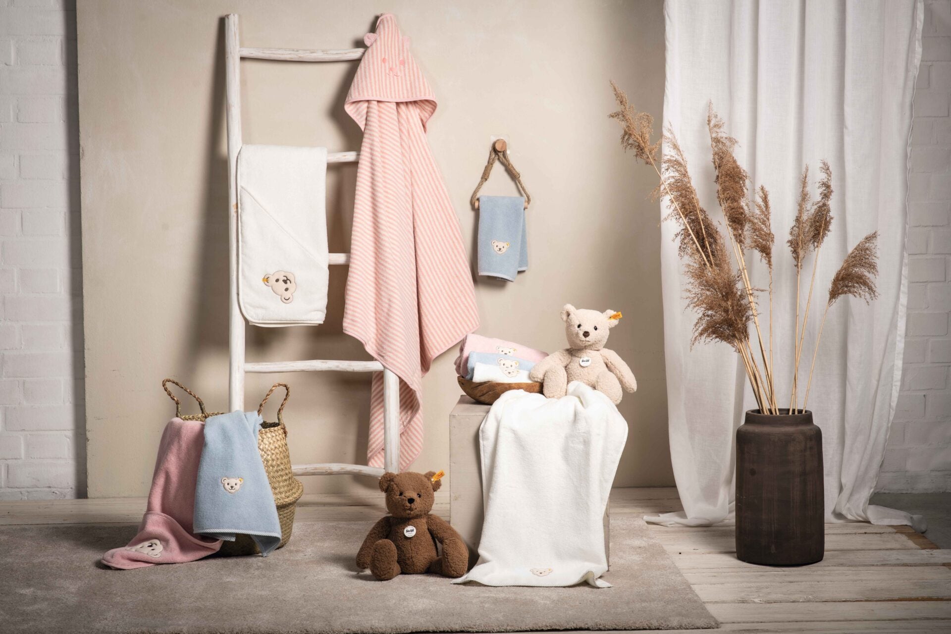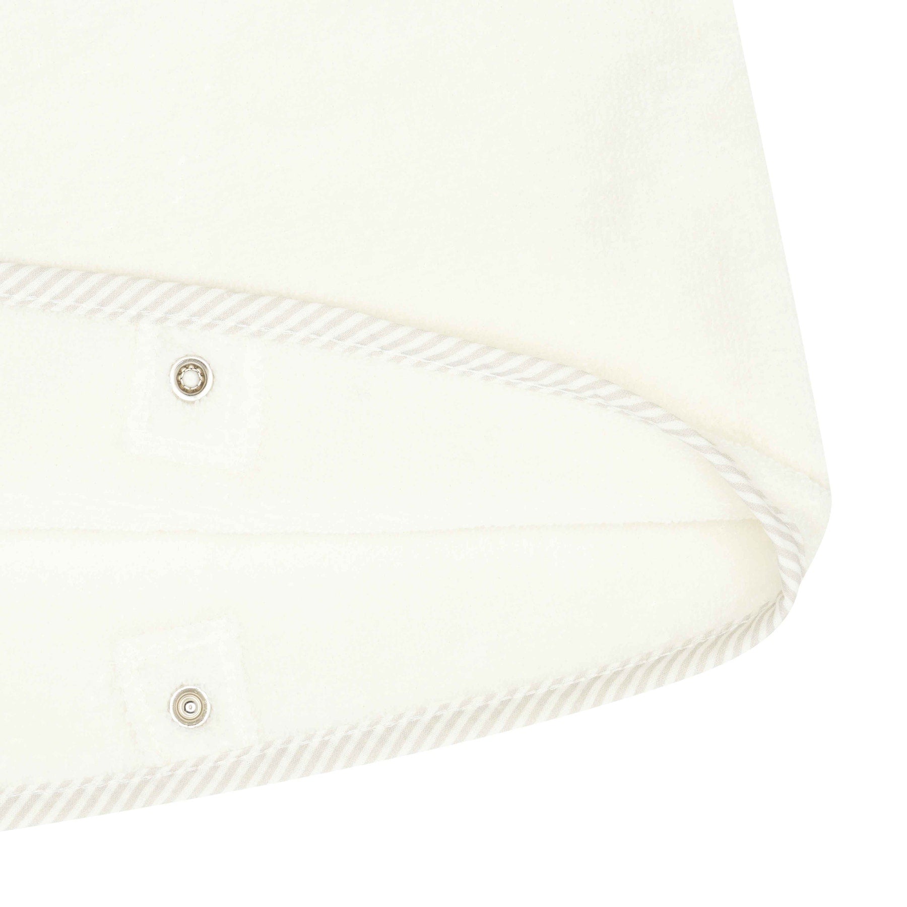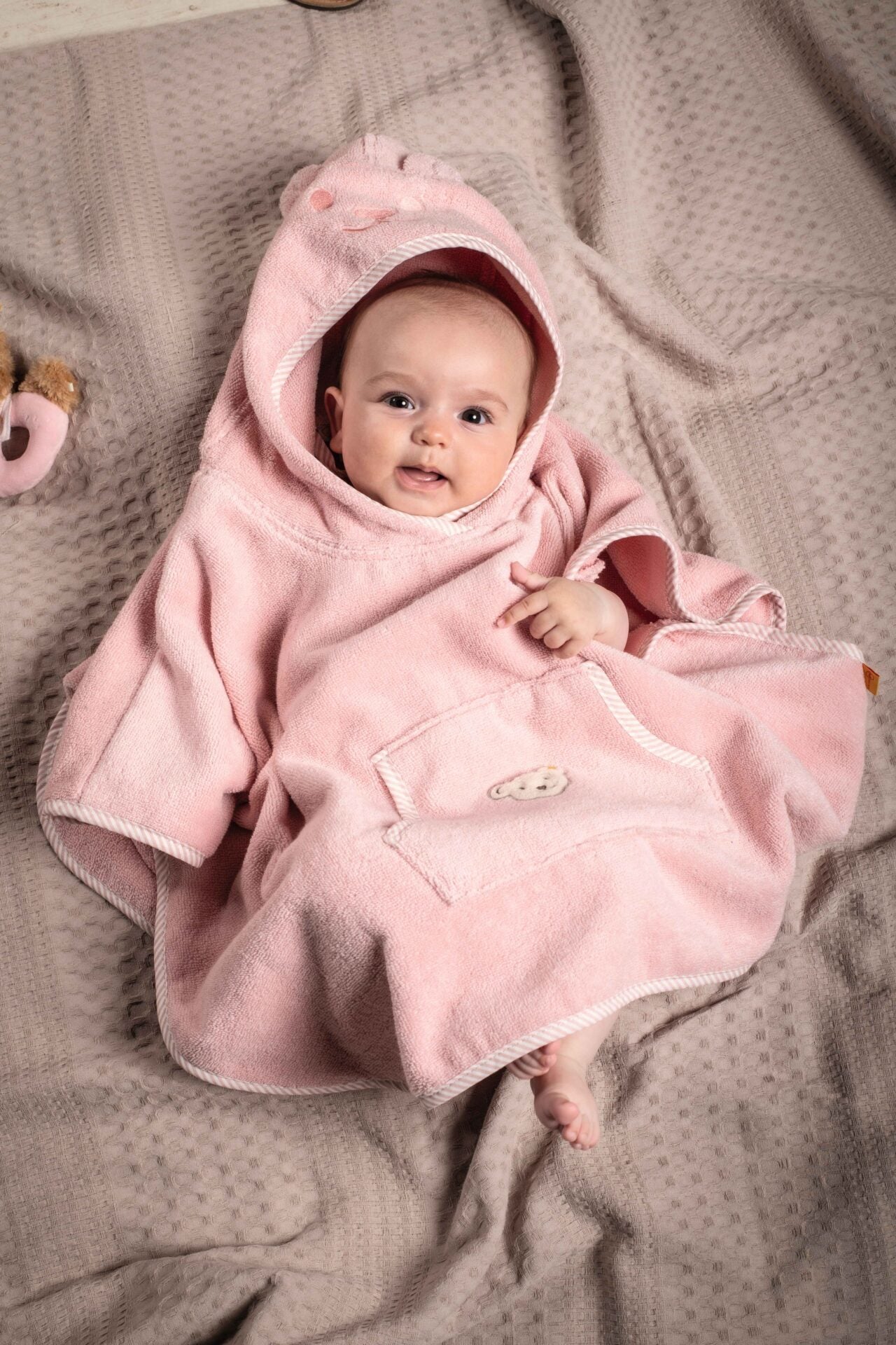 Flauschig-weicher Frottee trocknet und verwöhnt zarte Haut besonders angenehm. Druckknöpfe an den Seiten sorgen angenehm für perfekten Sitz. Ob nach einer Katzenwäsche, Zeit in der Badewanne oder unterwegs im Schwimmbad, die große Kapuze schützt das Köpfchen mit gemütlicher Wärme. Klassisches Offwhite passt in jedes Badezimmer und macht als Geschenk viel Freude. Auch ein flauschiges Steiff Teddybärmotiv ist überall dabei.