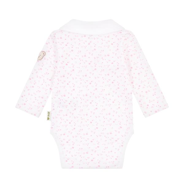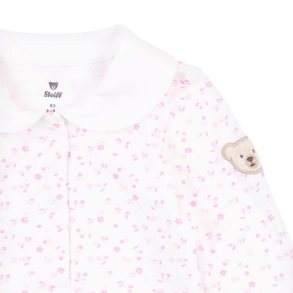 Dieser langärmelige Body aus weichem Jersey mit bezauberndem Blumenmuster ist ein niedliches Must-have für Ihre Kleine. Der stilvolle Peter-Pan-Kragen verleiht dem Design eine elegante Note. Dank der praktischen Druckknöpfe im Schrittbereich wird das An- und Ausziehen besonders einfach. Das flauschige Steiff Teddybärmotiv setzt einen liebevollen Akzent. Ein zauberhaftes Basic, das Komfort und Stil für die kleinsten Weltentdeckerinnen vereint.