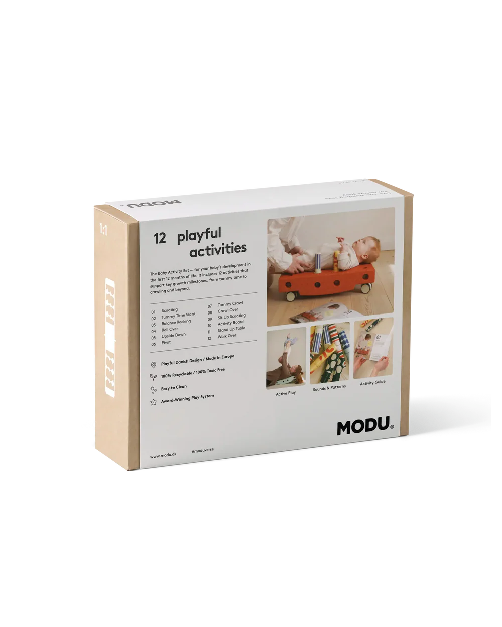 Mit dem MODU Baby-Aktivitätsset begleiten Sie Ihr Baby durch 12 spannende Aktivitäten im ersten Lebensjahr.