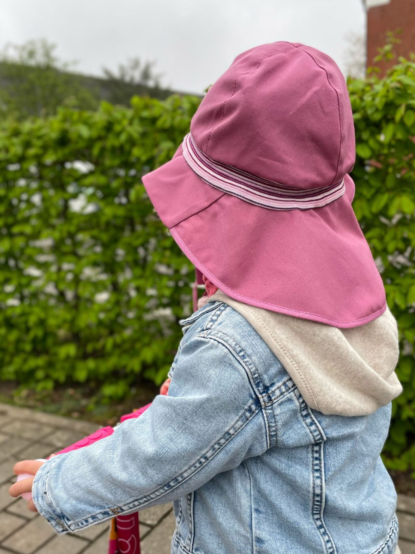 Die schöne und leichte Sommermütze ist mit einer umlaufenden Krempe, einem langen Nackenschutz und LSF 60 ausgestattet. Die Bindebänder geben den nötigen Halt und verhindern das "Wegfliegen", wenn es mal etwas stürmischer zugeht. Der elastische Bund aus weichem Jerseystrick schmiegt sich nicht nur sanft und bequem an den Kopf, sondern sieht mit seinem Streifenmuster auch richtig hübsch aus.