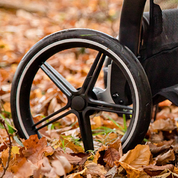 • Robuste Soft+ Räder mit einem Schaumkern aus Luftbläschen und einem Mantel aus Hartgummi