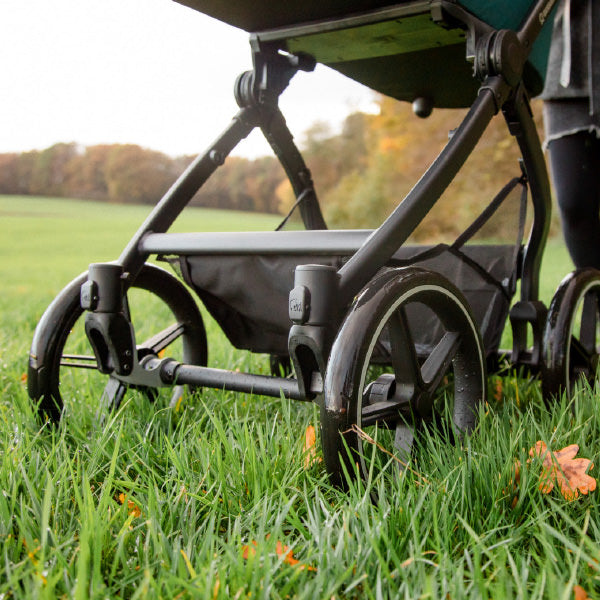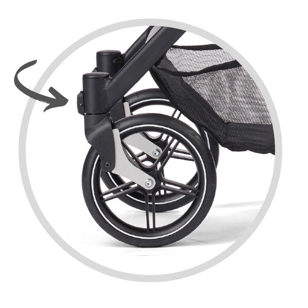 Für stabiles Fahren im Gelände lassen sich die Schwenkräder gegen eine feste Achse tauschen. (separat erhältlich)
