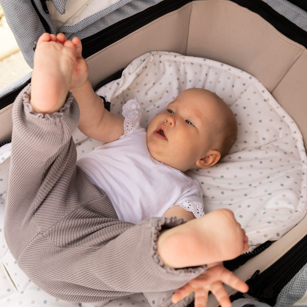 • Flexibel unterwegs – passende Adapter für Wanne oder Babyschale