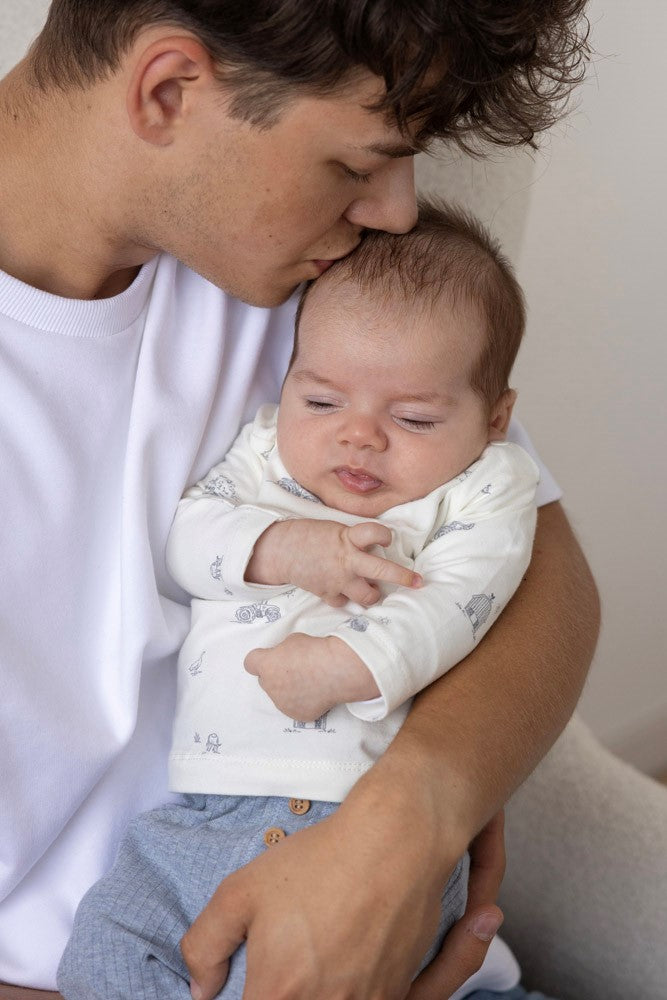 Diese weiche und bequeme Hose aus Bio-Baumwolljersey werden die Kleinen lieben! …und die Mamas und Papas auch, denn sie lässt sich gut kombinieren mit verschieden Oberteilen und Bodys und ist ganz schnell übergezogen. Und schon sind die Beinchen warm und geschützt. Langer Umschlagbund, süße Dekoknöpfe und das niedliche Bauernhofmuster.