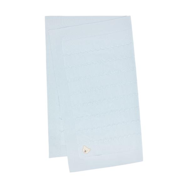 Diese kuschelige Babydecke in sanftem Hellblau ist perfekt für Frühjahr und Sommer und ist ein stilvoller Begleiter für die kleinsten Abenteurer.