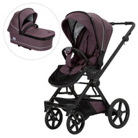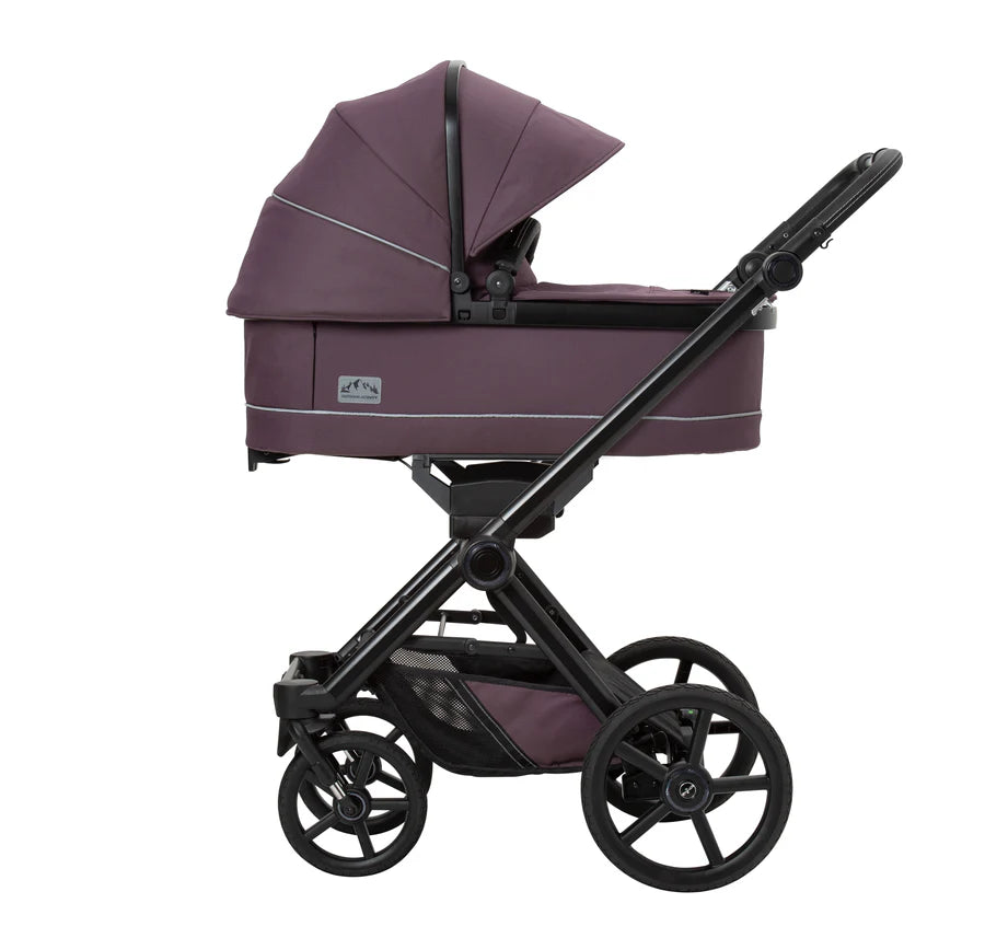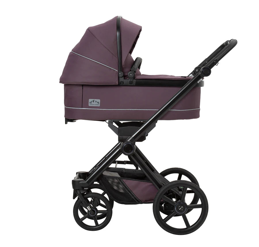 Abgerundet wird das Design durch farblich abgestimmte Körbe, die nicht nur zusätzlichen Stauraum bieten, sondern auch den modernen Look des Kinderwagens perfekt ergänzen.