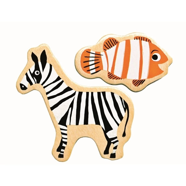 Magnimo ist ein magnetisches Bilderbuch mit Tieren aus der ganzen Welt. Das Kind reist mit dieser Box mit 36 magnetischen Holztieren durch die Welt.