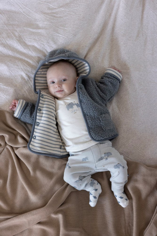 Diese weiche und bequeme Hose werden die Kleinen lieben! …und die Mamas und Papas auch, denn sie lässt sich gut kombinieren mit verschieden Oberteilen und Bodys und ist ganz schnell übergezogen. Und schon sind die Beinchen warm und geschützt. Langer Krempelbund und megasüßer Elefantenstreudruck. Ein echter Hingucker!