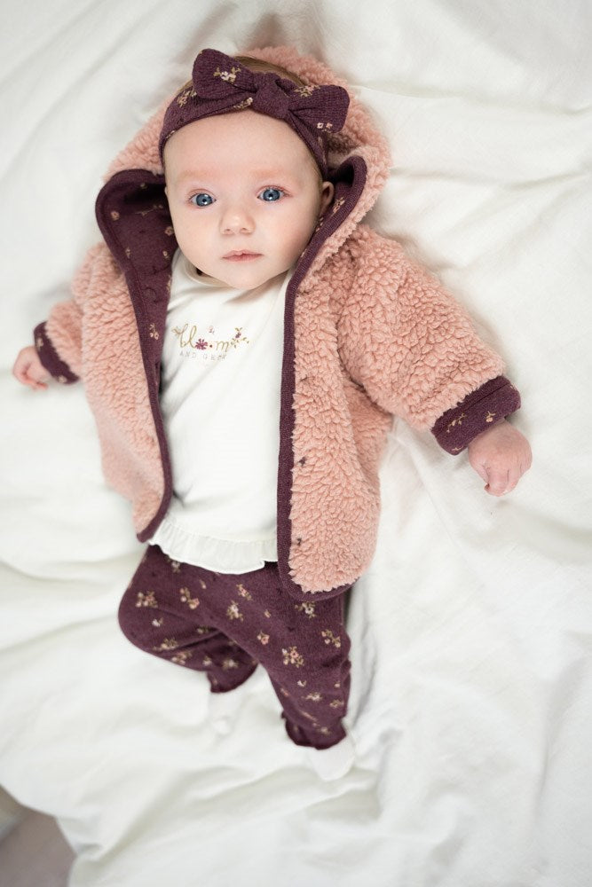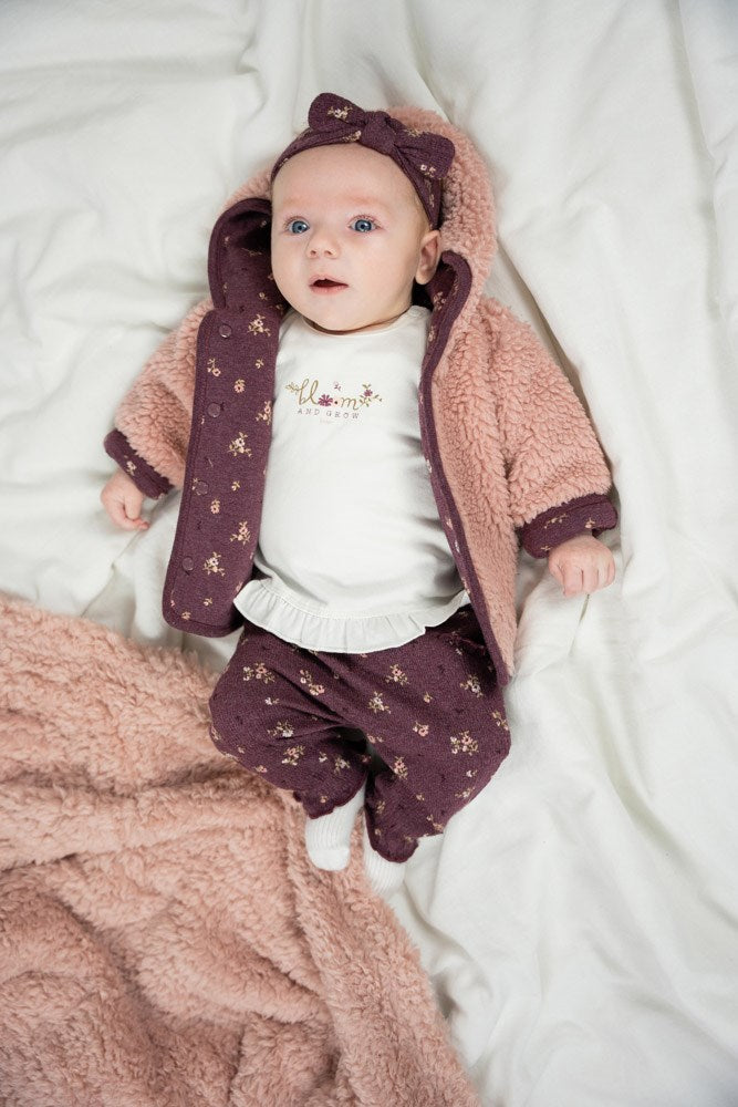 Diese süße und weiche Hose werden die Kleinen lieben! …und die Mamas und Papas auch, denn sie ist ein bisschen wärmer, lässt sich gut kombinieren mit verschieden Oberteilen und Bodys und ist ganz schnell übergezogen. Und schon sind die Beinchen warm und geschützt. Die zauberhaften Blümchen, die kleine Schleife am Bund und die Rüschen an den Beinenden und den beiden Taschen machen die kleine Hose zum echten Hingucker!
