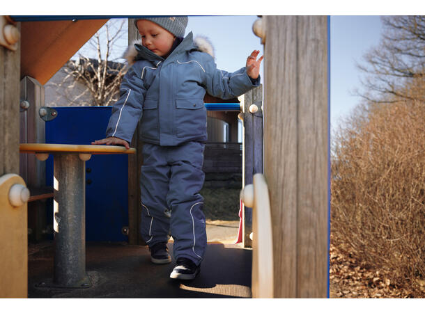 Die Hose hat eine 360-Grad-Reflexion, was bedeutet, dass die Kinder aus allen Blickwinkeln gesehen werden. Die Gurte sind mit einem Reißverschluss und Klettverschluss vorne verstellbar und abnehmbar. Sind die Gurte abgenommen, lässt sich die Taille mit Klettverschluss in der Taille verstellen – eine sehr komfortable Anpassung für die Kinder. Die Hose hat ein Fleecefutter im Gesäß, um ein warmes und angenehmes Gefühl zu erzeugen, damit die Kinder auch dann warm bleiben, wenn sie auf einer feuchten Oberfläche sitzen.
