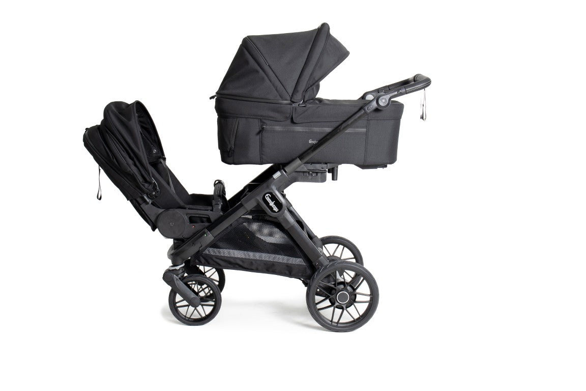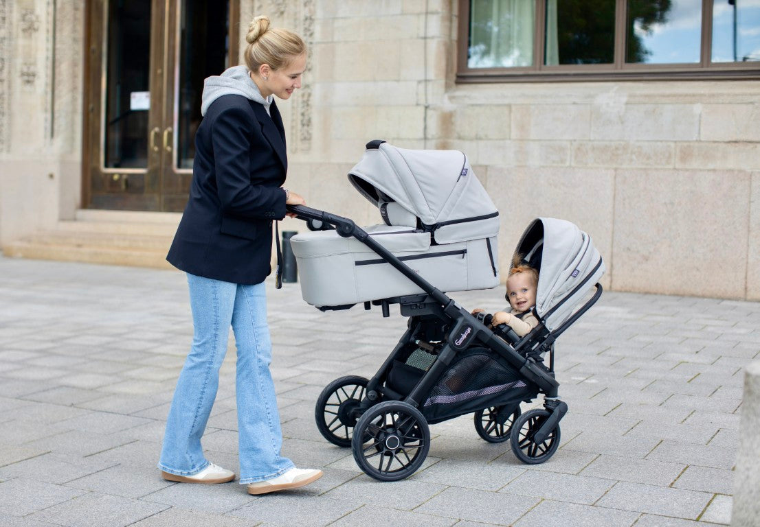 eine Babywanne und auch gleichzeitig einen Sporsitz (Flat+ oder Ergo+) nutzen.