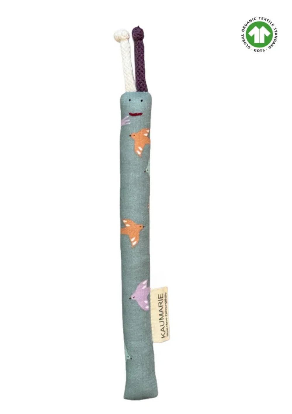 Die KAUMARIE hilft effektiv beim Zahnen, da durch das Kauen auf der Stoffstange ein wohltuender Gegendruck erzeugt wird, der Schmerz im Zahnfleisch lindert. Darüber hinaus eignet sich die KAUMARIE wunderbar als erstes Spielzeug zum Greifen lernen & üben der Hand-Mund-Koordination.