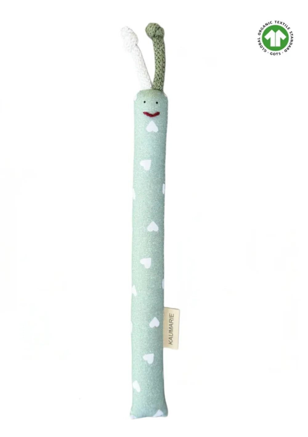 Die KAUMARIE hilft effektiv beim Zahnen, da durch das Kauen auf der Stoffstange ein wohltuender Gegendruck erzeugt wird, der Schmerz im Zahnfleisch lindert. Darüber hinaus eignet sich die KAUMARIE wunderbar als erstes Spielzeug zum Greifen lernen & üben der Hand-Mund-Koordination.