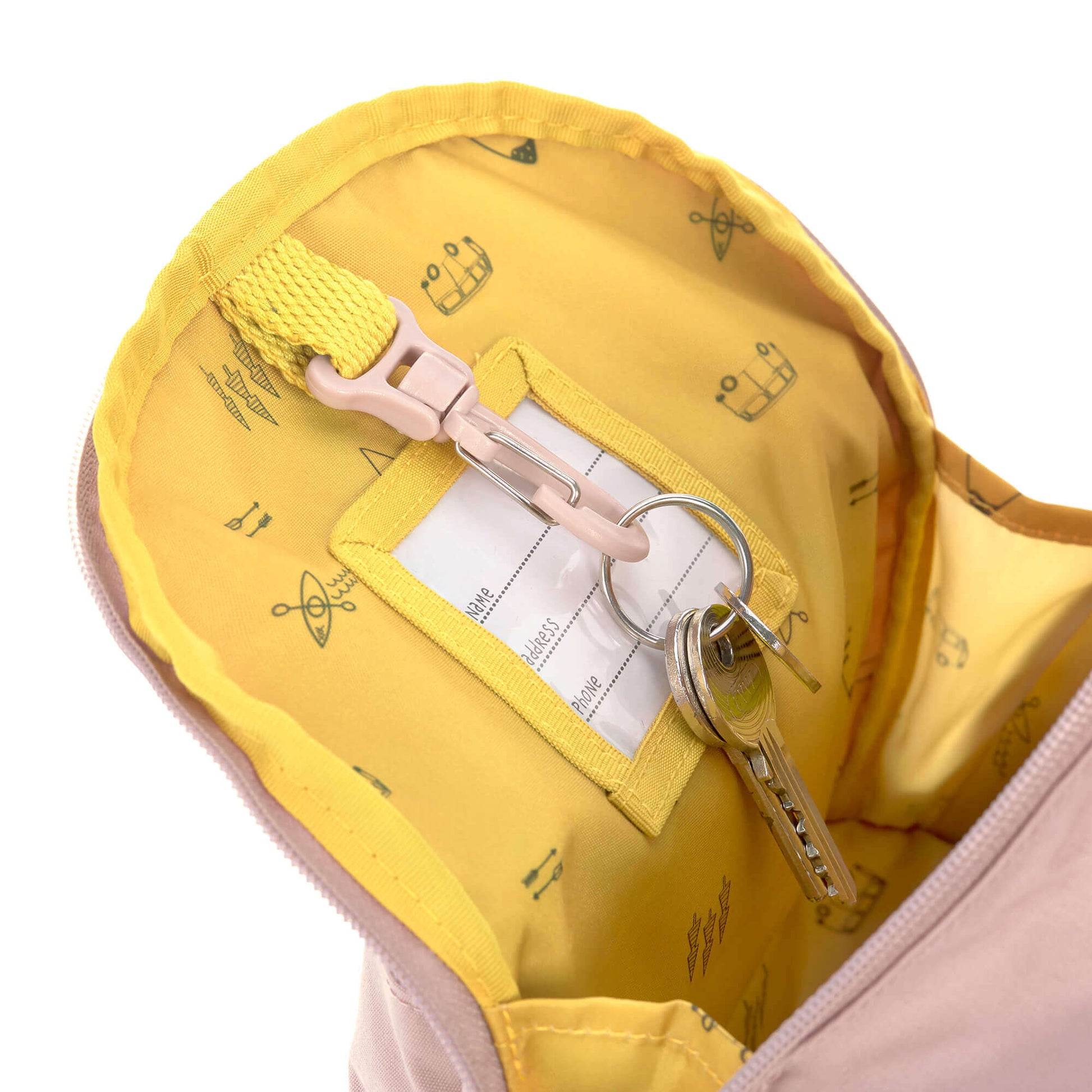 Die gepolsterten Schultergurte können individuell auf die Größe des Kindes eingestellt werden und ein Brustgurt sorgt für Extrastabilität. Das Namensschild auf der Innenseite schließt Verwechslungen aus.