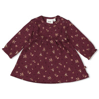 Einfach zauberhaft! Dieses schöne, etwas wärmere Kleidchen ist perfekt für die erste Feier. Es ist mit Bio-Baumwolle gefertigt und durch den Elastananteil sehr bequem. Druckknöpfe an der Schulter erleichtern das An- und Ausziehen.