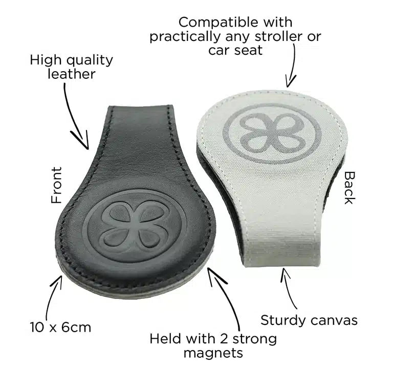 Die hochwertigen Leder-Magnetclips für den Kinderwagen, den Buggy, für die Hartschale oder auch zum Befestigen von diversen Accessoires.