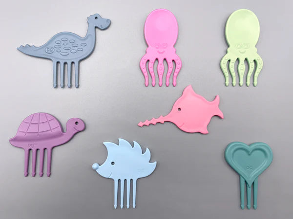 Das Pieksi Sweet Softies enthält 7 Pieksis (Dino, Quallen, Igel, Schildkröte, Herz und Schwertfisch), die in den schönsten Eiscrémefarben erstrahlen: