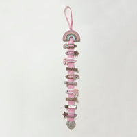 Unser verzauberter Regenbogen-Clip-Aufhänger bietet Platz für etwa 12 Clips (abhängig von der Clip-Größe) und hängt perfekt an einem Ripsband!
