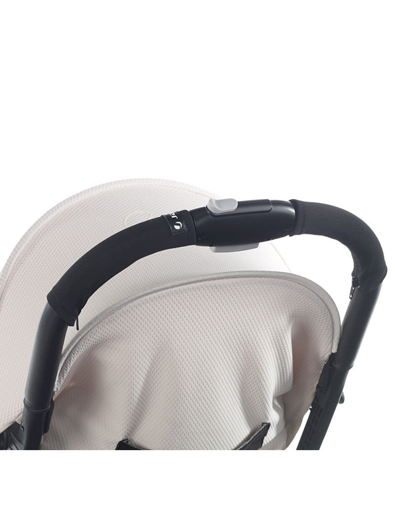 Der Stoff lässt sich ein bisschen dehnen. Wir haben ihn sogar über den sehr robusten und dicken Lenker von Emmaljunga drüber bekommen.
