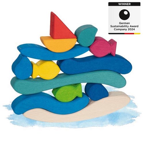Die liebevoll gestalteten Holzpuzzleteile werden aus Ahornholz gefertigt und sind Made in Europe. Die feine Lasur lässt die Maserung des Holzes noch erkennen. Mit goki evolution entdecken die Kinder das kreative und freie Spiel. Und so erschaffen sie vielleicht eine Wasserwelt, aber vielleicht ist es auch ein Berg oder ganz was anderes. Ein Stapel- oder Legespiel voller Möglichkeiten.