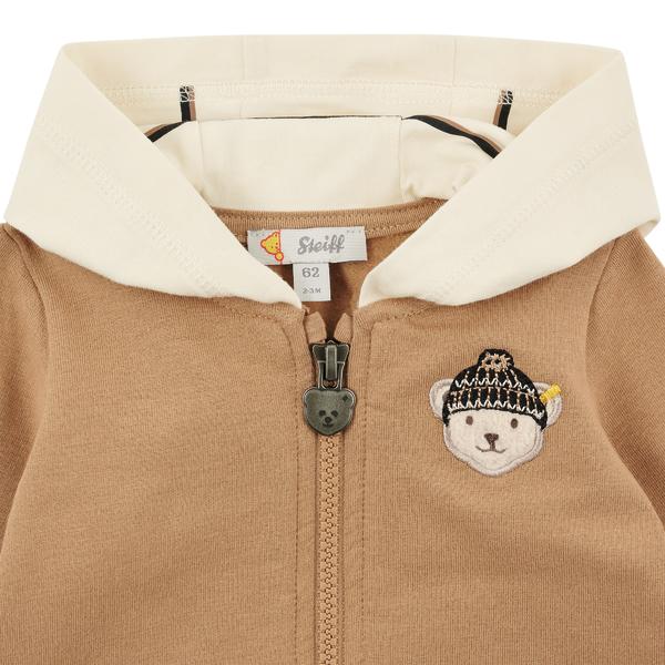 Ein Basic mit Coolness-Faktor ist die gemütliche Sweatjacke aus herrlich weichem Sweat mit gestreiftem Kapuzenfutter. Die große Kapuze bietet zusätzlichen Schutz vor Wind und Wetter. Der praktische Reißverschluss ist mit einem Kinnschutz ausgestattet. Eine lockere Passform und flexible Rippbündchen schenken aktiven Jungen Bewegungsfreiheit. Die klassische braune Farbe ist vielfältig kombinierbar. Zum Reinkuscheln!