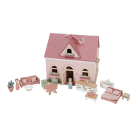 Das tragbare Puppenhaus von Little Dutch ist ein niedliches und gemütliches rosafarbenes Haus mit schönen Details.