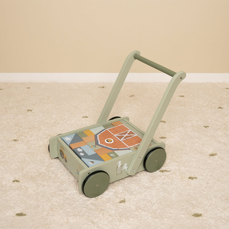 Der Holzblockwagen ist mit Holzrädern ausgestattet und mit bunten Holzblöcken gefüllt, die wunderschöne Illustrationen aus der Little Farm-Kollektion zeigen. Die verschiedenen Größen der Blöcke fördern die Erkennung von Farben und Formen bei Kindern. Der Griff ist in der richtigen Höhe für Kleinkinder, damit sie bequem durch den Raum laufen können. Dieser fröhliche Blockwagen garantiert stundenlangen Bau- und Spielspaß. Montage durch einen Erwachsenen erforderlich.