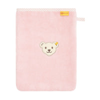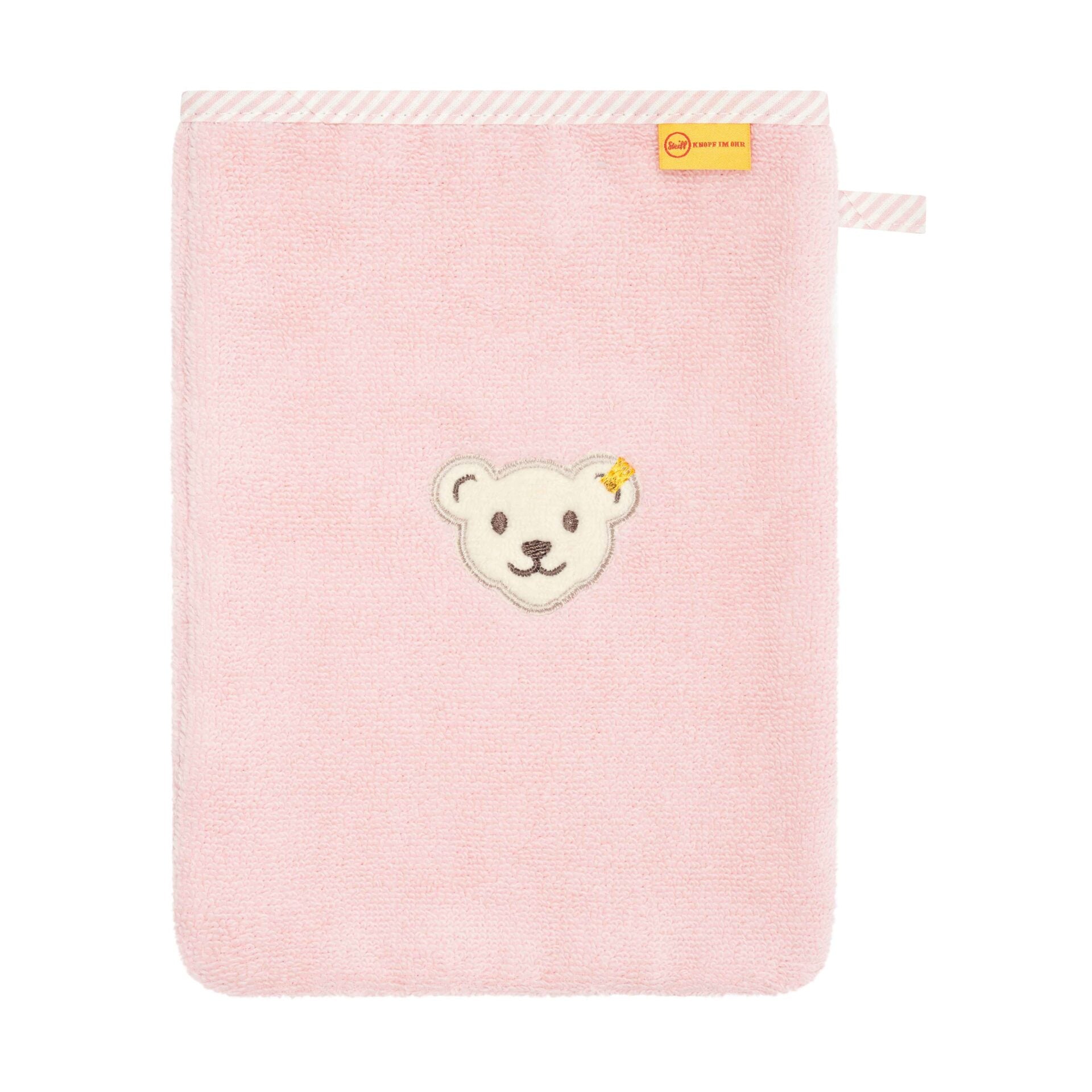 Kuschelig-weicher Frottee reinigt und verwöhnt zarte Haut besonders angenehm. Als großzügiger Handschuh gearbeitet sorgt er an großen und kleinen Händen damit beim Waschen für Streicheleinheiten. Leicht und unkompliziert verstaubar kommt der Waschlappen zu Hause oder unterwegs zum Einsatz und beseitigt jedes Malheur im Handumdrehen.Hübsches Rosa passt als Klassiker in jedes Bad. Ein flauschiges Steiff Teddybärmotiv ist überall dabei. Das weiche Accessoire bereitet als Geschenk viel Freude.