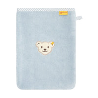 Kuschelig-weicher Frottee reinigt und verwöhnt zarte Haut besonders angenehm. Als großzügiger Handschuh gearbeitet sorgt er an großen und kleinen Händen damit beim Waschen für Streicheleinheiten. Leicht und unkompliziert verstaubar kommt der Waschlappen zu Hause oder unterwegs zum Einsatz und beseitigt jedes Malheur im Handumdrehen.Zartes Hellblau passt als Klassiker in jedes Bad. Ein flauschiges Steiff Teddybärmotiv ist überall dabei. Das weiche Accessoire bereitet als Geschenk viel Freude.